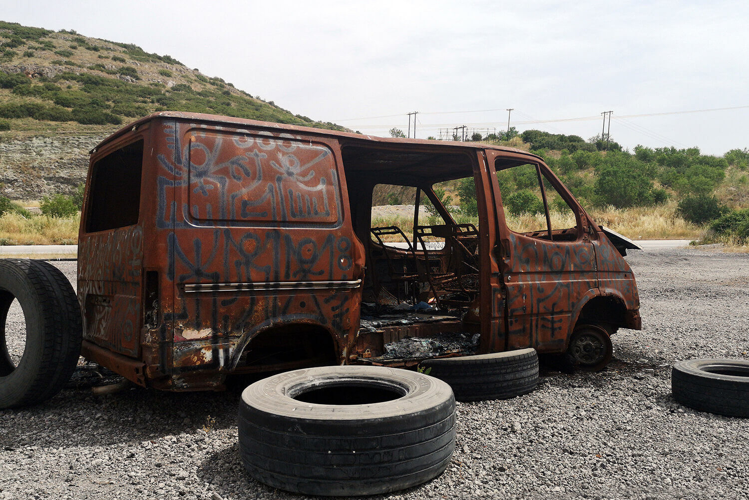 • Collection of scrap rebar, scaffolding, and HVAC units